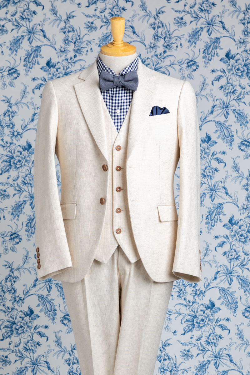 TOPメンズタキシード NOA2017_エクリュ 価格: ¥109,780 (税抜 ¥99,800) 販売期間: 数量: 個 在庫: 在庫あり 在庫 在庫あり 返品についての詳細はこちら 【素材】コットン×リネン(ジャケット・ベスト・パンツ)【サイズ】Y/A/AB/B体 各S/M/L/LL/LLL